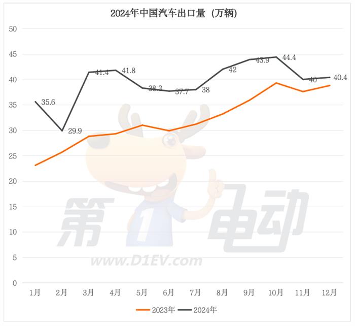 乘联会数据显示,2024年中国汽车实现出口473。4万辆,同比增加23。3%。此中,12月出口量为40。4万辆,根基取11月持平,比拟2023年增加4。1%。